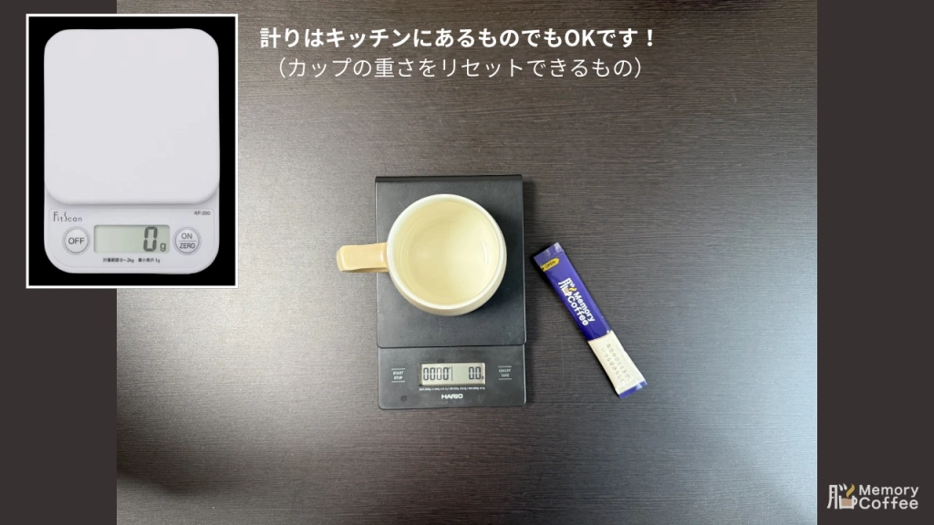粉の量とお湯の量を正確に測ることで、最高の黄金比をいつでも再現できます。